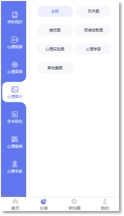 平台主要包含学科知识、心理视频、心理音频、心理图片、心理案例、心理专家等版块,新增了校外访问功能和用户中心功能,升级了高级检索功能,并对移动端页面进行了重构。