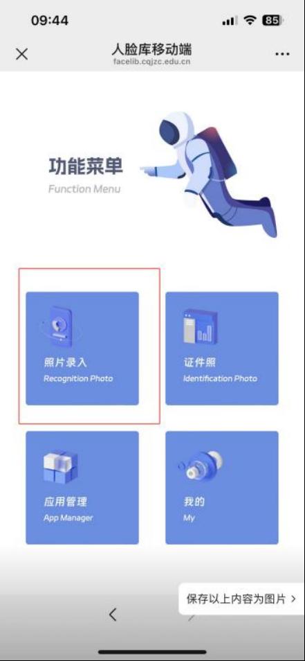 1.进入【人脸库移动端】页面→ 点击【照片录入】如下图: