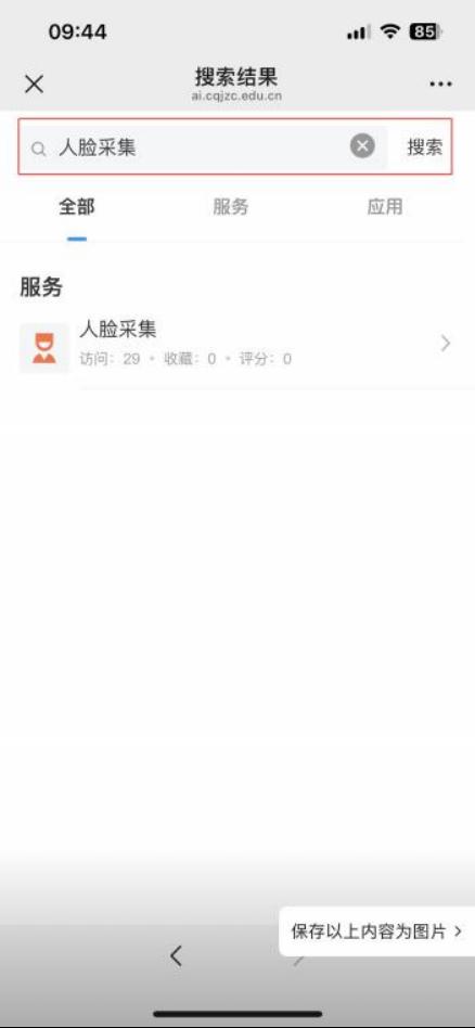 2.输入关键词【人脸采集】→ 点击搜索结果中的对应功能如下图: