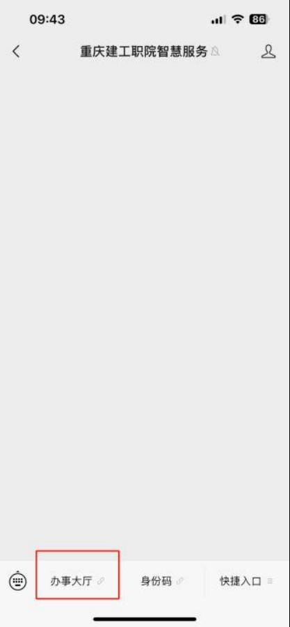 1.进入服务号主页→ 点击底部菜单栏【办事大厅】如下图: