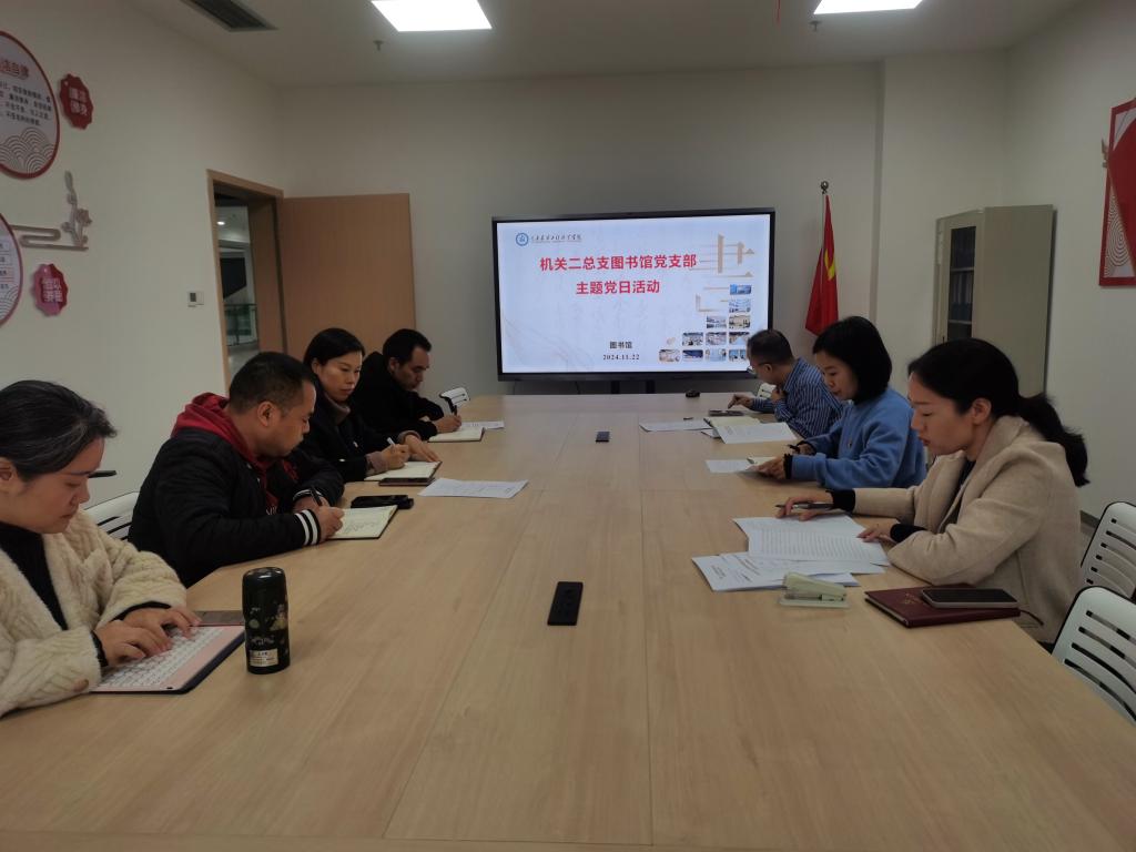 2024年11月22日上午,图书馆党支部在图书馆3楼会议室开展以“智慧启航•教育育才”为主题的党日活动,活动由党支部书记张春伟主持,支部全体党员参加,入党积极分子刘丽老师列席。