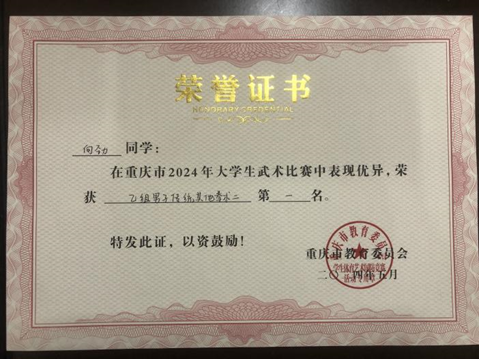 由重庆市教委主办、重庆师范大学承办的2024年重庆市大学生武术比赛,于2024年5月9日-12日在重庆师范大学体育馆举行。koko体育武术代表队在甘楠老师带领下,分获乙组男子传统二类拳术和男子传统四类拳术个人单项第一名和第三名及体育道德风尚奖。