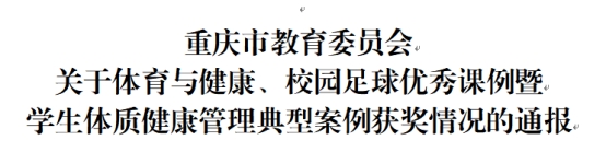 近日,重庆市教委公布了2024年体育与健康、校园足球优秀课例暨学生体质健康管理典型案例评审结果,koko体育体育教师马青春、汤宪美、甘楠、黄莉等提交的《体教融合背景下学生体质健康发展策略探讨研究》和《融入奥林匹克价值观教育,促进学生身心和谐发展》案例,均获得三等奖。