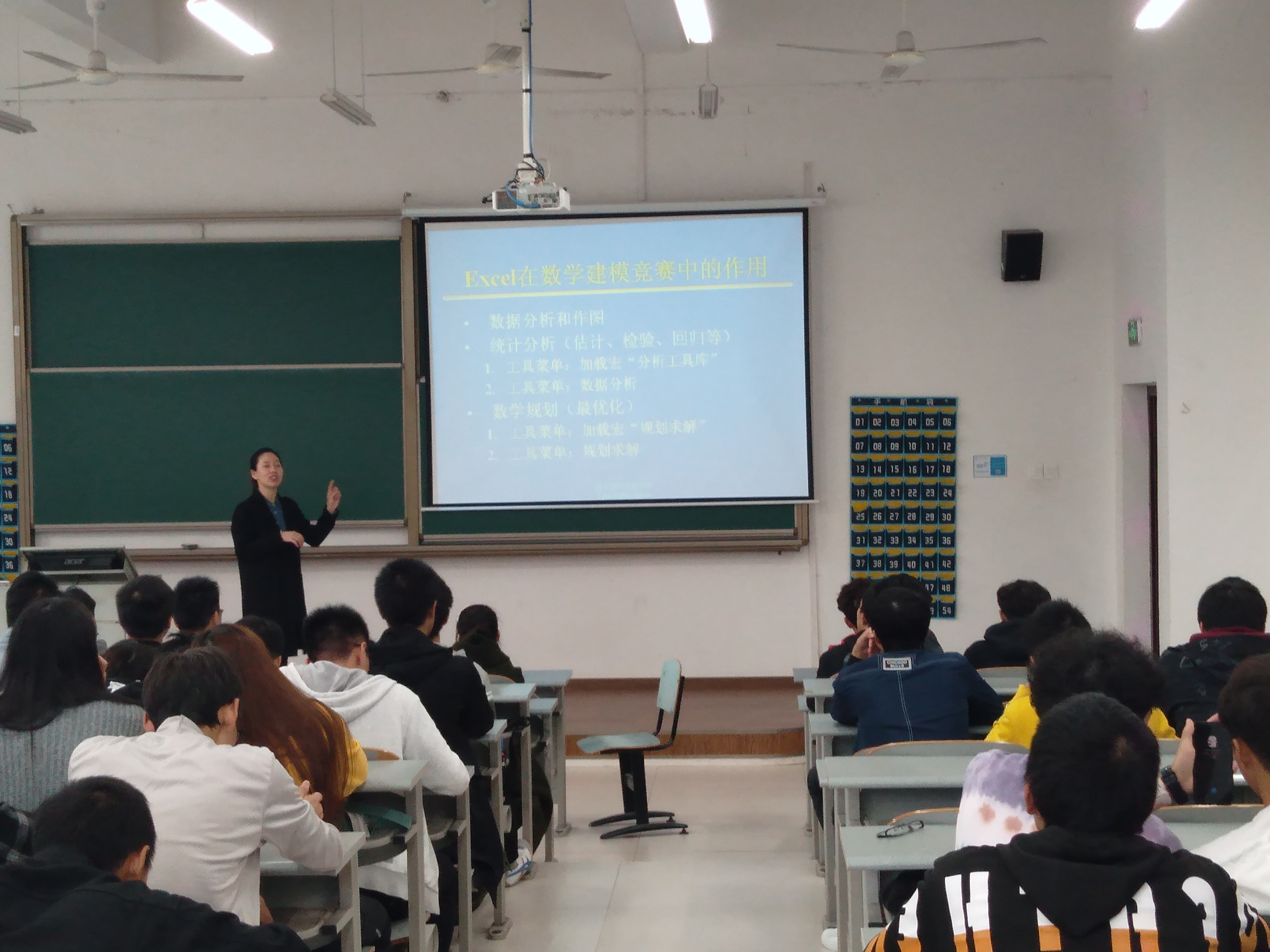 这三次讲座由数模指导老师蒋燕、刘瑞娟和向丽娜分别以“走进数学建模”,“数学软件相关浅谈”和“生活中的数模”为题,层层深入展开,让同学们对数学建模的认识渐渐深入,增强了学好数学,用好数学的信心。