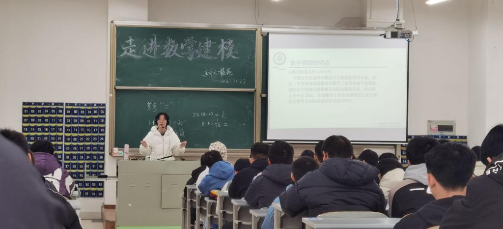 11月25日蒋燕老师在5教107教室开展的“走进数学建模”为主题的讲座中,就数学建模大赛的历史、内容和竞赛程序分别进行了介绍,对历年的参赛情况和获奖情况做出了详细统计和说明,分享了大量有关数学建模的资料和宝贵经验,使同学们对数学建模有了充分的了解,增强了同学们学好数学,用好数学的信心。同时,对同学们的平时学习和培训,以及如何做好参赛准备也给出了意见和建议。
