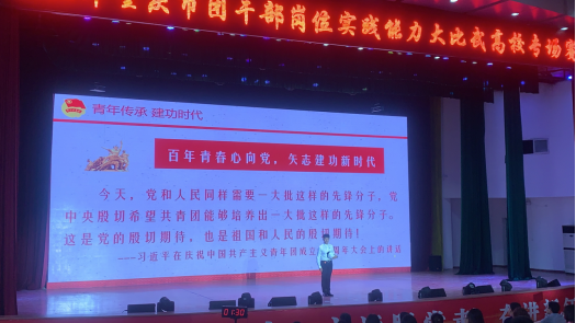 在微团课展示环节,杜惠超老师以《青年传承 建功时代》为主题,以跨越百年的两个故事为载体,围绕“喜迎二十大、永远跟党走、奋进新征程”主题教育实践活动、党领导的青年运动史、习近平总书记在庆祝中国共产主义青年团成立100周年大会上的讲话,论时代担当,立榜样力量。