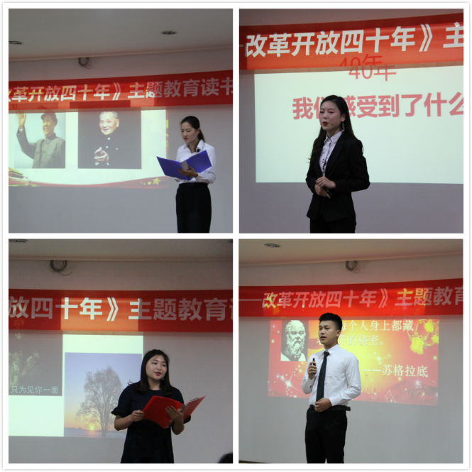 为贯彻习近平总书记对关心下一代工作的重要指示精神,引导广大青年树立和践行社会主义核心价值观。6月14日下午,我院在厚德楼411室举办了“腾飞的祖国—改革开放四十年”主题教育读书活动演讲比赛。