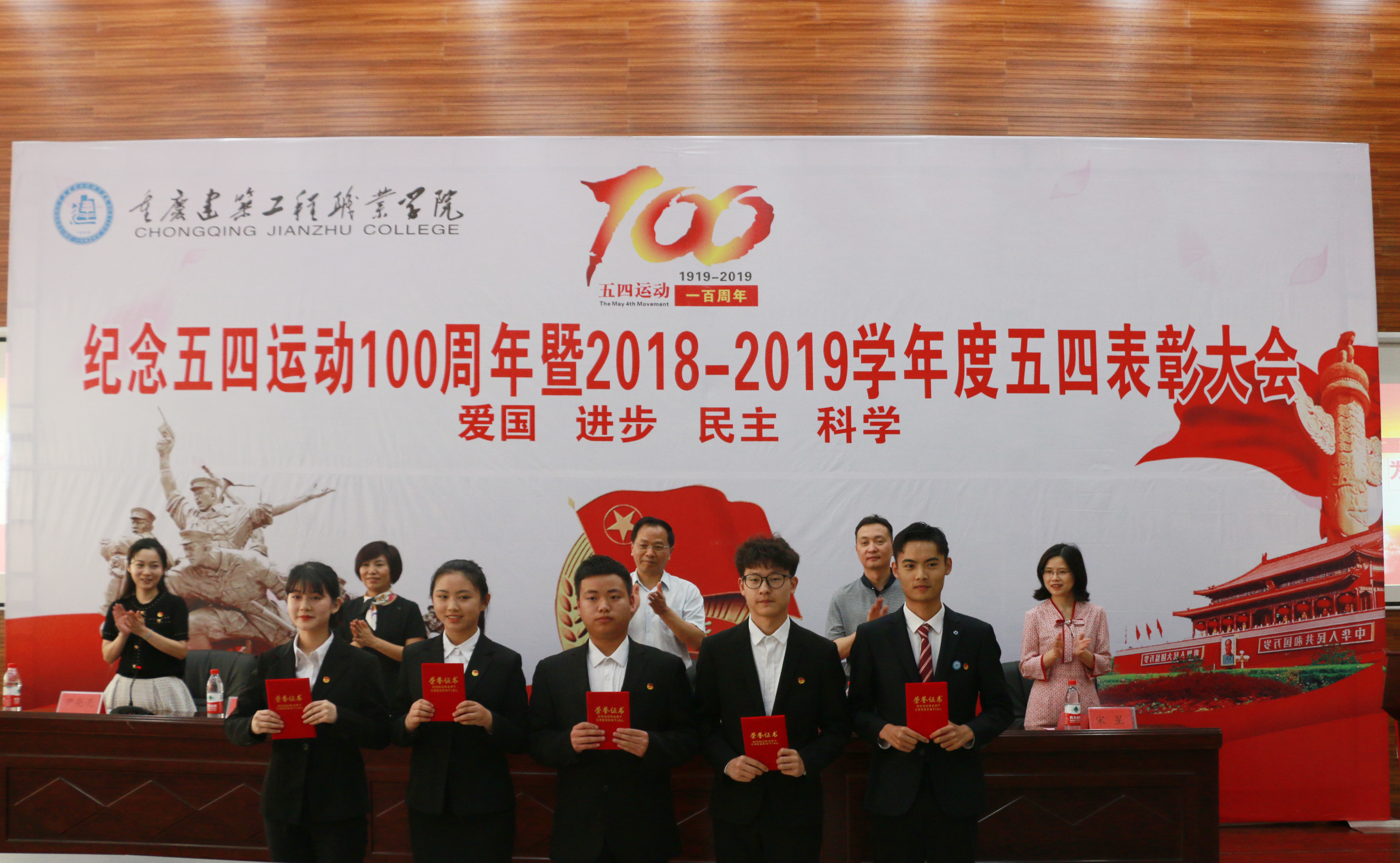 今年是五四运动100周年,也是新中国成立70周年,全院各级团学组织和青年,将以此次表彰大会的召开为契机,弘扬五四精神,践行青春理想,以饱满的热情投身学院发展建设。100年前,青年们高举爱国旗帜走上街头;100年后,青年们志承新时代永久奋斗!