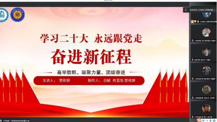 为深入学习宣传贯彻党的二十大精神,加强对团员青年的教育引导,2月6日,经济管理与公共事务学院团总支在腾讯会议开展了“学习二十大、永远跟党走、奋进新征程”主题团日活动。