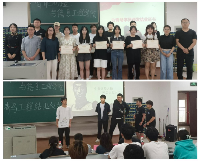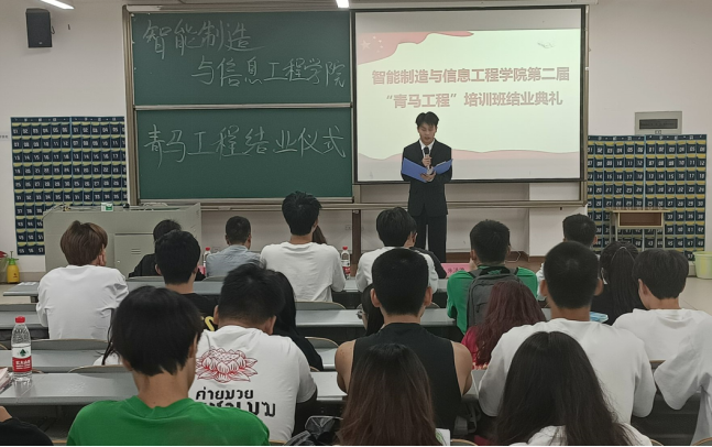 为推动学习贯彻习近平新时代中国特色社会主义思想主题教育在青年中走深走实,5月31日,我院2023年“青马工程”培训班结业典礼在5-209教室举行。学院党总支副书记尹亮亮、学工办主任莫凤玲、全体辅导员及本期“青马工程”全体学员参加了仪式。
