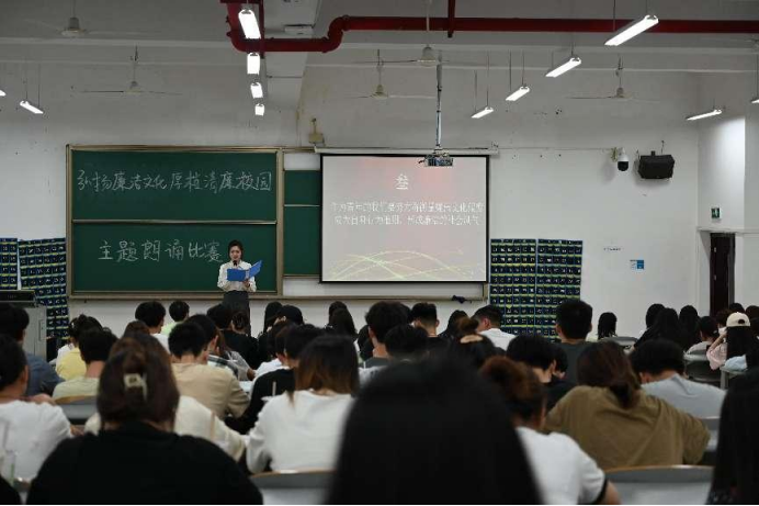 为深入贯彻落实中央办公厅印发的《关于加强新时代廉洁文化建设的意见》精神,深入推进新时代廉洁文化建设,营造廉洁从教的育人环境,培育学生敬廉崇俭的价值观念,6月7日中午,建设管理学院在求实楼5-106成功举办了“弘扬廉洁文化,厚植清廉校园”主题朗诵比赛。建设管理学院学生工作办公室副主任王玲老师、团总支书记胥媛媛老师、辅导员田卫老师、程海雯老师、牛蔓老师出席本次比赛并担任评委,比赛由谭舒蕃同学主持。