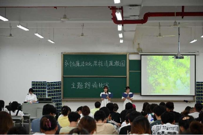 在比赛现场,来自学院各班级的11组27名参赛选手依次登台,先后朗诵了《廉洁颂》《青春之路 与廉同行》《廉洁》等作品。他们饱含深情的朗诵,配以音乐、视频等,或铿锵有力、声情并茂,或婉转深情、娓娓道来,以富有感染力、共情力的表现,诉说青春梦想、畅谈奋斗之志、共话成长感悟,引发了在场观众的强烈共鸣,赢得台下阵阵掌声。