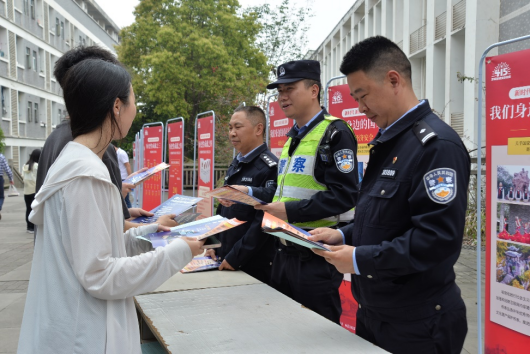为大力普及国家安全知识,提升大学生国家安全意识,增强维护国家安全的责任感和能力,4月14日,保卫处、校团委联合峡口镇派出所面向全校同学举办了一场“全民国家安全教育日”宣传教育活动。