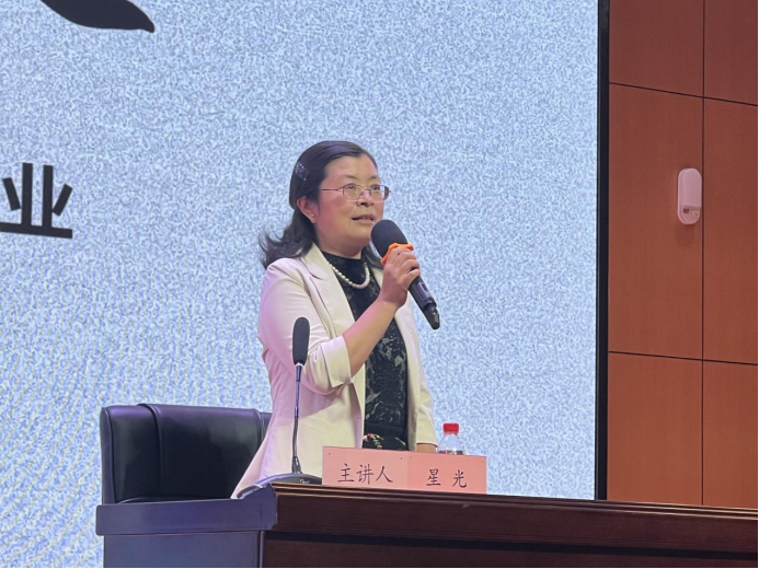 讲座开始时,星光老师用一个“泼冷水的故事”告诉大家要把别人的拒绝当成自己成功路上的养料,从而激励同学们创新创业要有不怕挫折的精神。并进一步带入到本次宣讲的主题——高职毕业生就业发展趋势与成效以及如何进行轻资产创业。