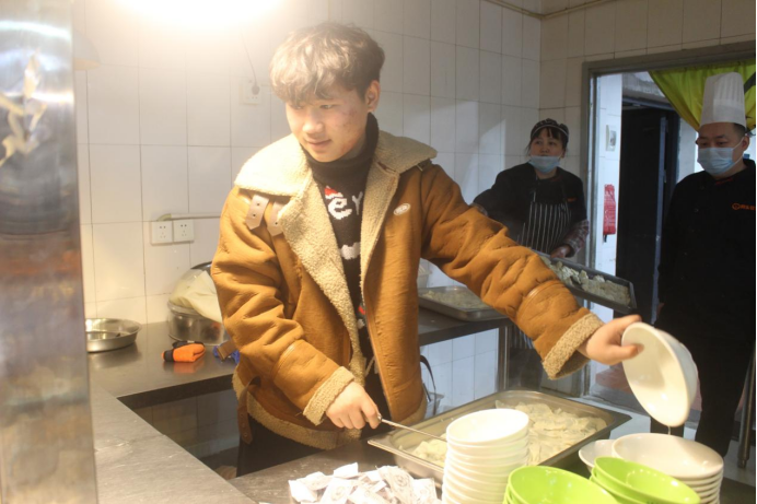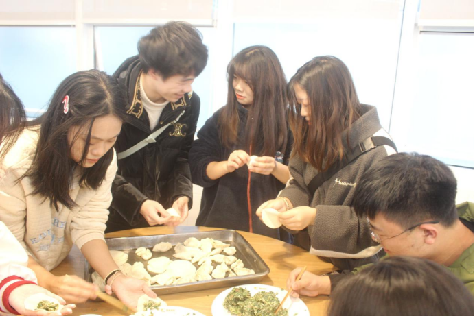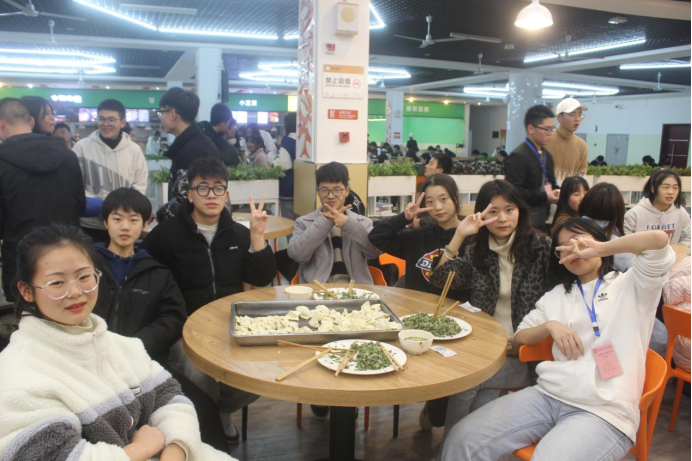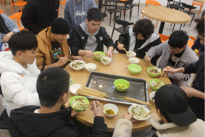 随着裁判的一声令下,大家分工协作,各显身手,用自己最拿手的方式包着各种各样的饺子,有元宝饺、葵花饺等各种样式的饺子,手法熟练,宛若大厨。也有同学现学现包,虚心向会包饺子的小伙伴请教,包出十分可爱的饺子。现场气氛和谐,笑语不断,此时的他们如同家人一样亲切。我们在此齐聚一堂,凭着自己的经验和创造力的碰撞,为此次活动增添了几分趣味,并在寒冷的冬日为同学们送上一抹温暖。