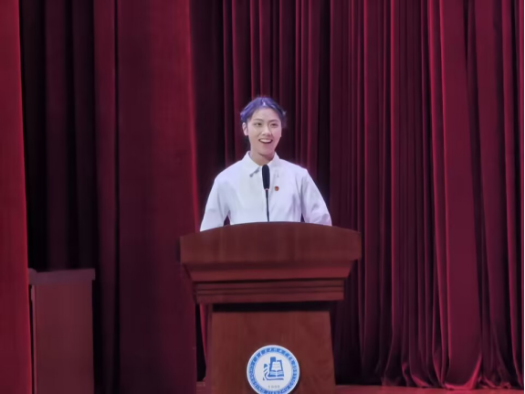 仪式上,新晋青马学员代表罗尹凰同学发言并作出郑重承诺。