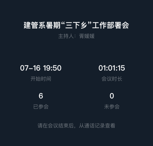为确保本次活动的如期顺利进行,该团队于7月16日开展了线上工作部署会,团队成员与指导老师6人参与了本次会议。会上,指导老师对本次活动的整体部署安排做了说明,并强调在活动开展过程中成员们应注意的各项事宜。参与同学表示在活动中定将听从指挥、服从安排,充分发扬“奉献、友爱、互助、进步”的志愿服务精神,彰显新时代大学生的良好精神面貌。