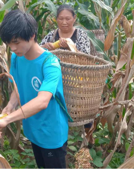 赤日炎炎,空气中夹杂着满满的热情。实践团成员付才艺、曾有权帮助空巢老人收玉米、耕地,一滴滴因烈日烘烤而滴下的汗水,一次次因干农活弯下的佝偻背影,都深深撞击着成员柔软的内心。