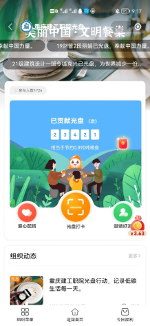 活动中,同学们通过微信光盘打卡小程序,每日三餐上传光盘照片进行打卡。本次“光盘打卡”活动自开展以来,吸引了众多同学的踊跃参与,11月份学院总打卡次数达到23421次,相当于节约0.89吨粮食。在一个个干净的餐盘下,是同学们对光盘活动的认可与支持;是同学们凝聚爱心的见证;更是同学们对中华民族勤俭节约传统美德的传承。