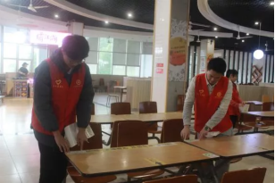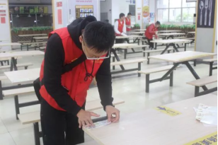 活动前期,志愿者们在餐桌上贴上光盘打卡的标识,动员全校学生以个人或者团体的方式加入“美丽中国·文明餐桌”光盘打卡活动,争做最美光盘人,用实际行动践行“粒粒皆辛苦”的精神。
