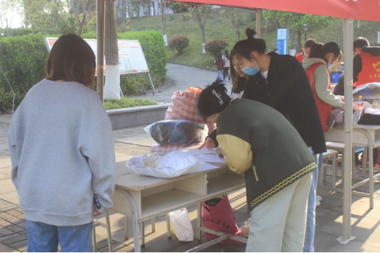 活动中,志愿者积极动员在场同学,讲解旧衣捐赠的意义。同学们也积极响应,踊跃捐出了干净整洁的旧衣物。