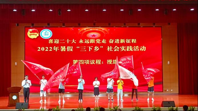 为深入学习宣传贯彻习近平新时代中国特色社会主义思想,深入学习习近平总书记在庆祝中国共产主义青年团成立100周年大会上的重要讲话精神,引导和帮助广大青年学生上好与现实相结合的“大思政课”,在社会课堂中受教育、长才干、作贡献,7月11日,koko体育2022年大学生暑期“三下乡”社会实践活动出征仪式在学生活动中心多功能厅顺利举行。学校党委副书记龚群英出席出征仪式,学工部、校团委等部门负责人,各二级学院党总支书记、团总支书记、辅导员代表、各实践团队指导教师和学生代表参加仪式。