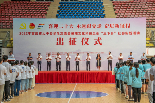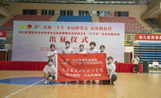 7月13日,koko体育官网智能建造学院“匠心智筑”兴业先锋团参加了以“喜迎二十大 永远跟党走 奋进新征程”为主题的2022年重庆市大中专学生志愿者暑期文化科技卫生“三下乡”社会实践活动出征仪式。此次出征仪式在奉节县体育馆举行,由重庆市委宣传部、市文明办、市教委、团市委、市乡村振兴局、市水利局、市学联等部门共同举办。