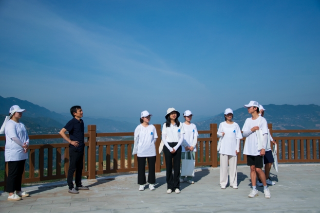 “金山银山飘彩云,青山绿水出脐橙,如果要说乡村好,我就要来说欧营,说欧营来道欧营,八包九槽设伏兵,营盘包下扎大营……夔州古道穿全境,多少名人从中行……”在欧营村委主任刘修权的《奉节方言说欧营》的娓娓道来中,开启了 “匠心智筑”兴业先锋团的村史调研。欧营村历史悠久,文化底蕴丰厚,蜀汉时期的夔州东路驿道铺路穿过全境,相传在古代有一位姓欧的将军行军至此,扎营驻军,故取名为欧营。7月14日一大早,村支书蔡兴发带领大家登上了山顶观景平台,俯瞰欧营村全貌。在观景台上,我们看到巍然屹立的欧将军雕像,诗仙李白、诗圣杜甫曾在此留下的古诗,幽曲婉转的欧营古道,漫山遍野的脐橙树,无一不透露着欧营村的文化底蕴。