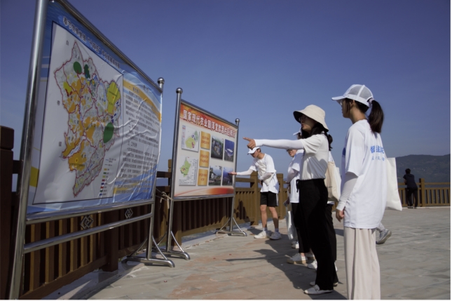 穿过脐橙林朝山下走,我们来到了一座醒目的黄色外墙的四合院,青瓦压着廊墙,据草堂镇副镇长郭晓桃介绍,这是欧营村刚修缮而成的村史馆,上个世纪六七十年代曾经上山下乡的一个知青点。郭镇长勉励大家要学习当年知识分子克服困难,脚踏实地,自强不息的品格,扎实认真开展好“三下乡”社会实践活动,同时也介绍了欧营村的规划,将通过努力打造成为智慧农业+休闲旅游+文化娱乐为一体的农旅文融合互动式体验基地。