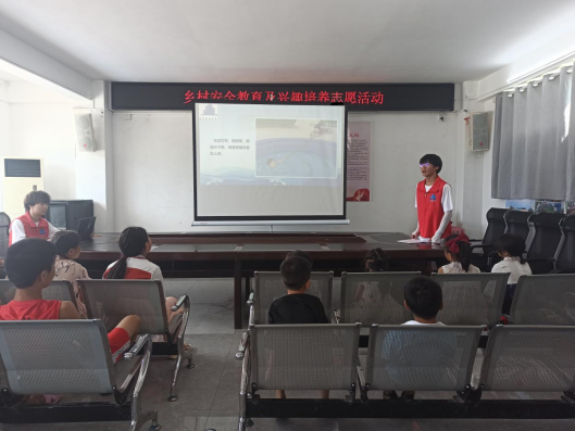 “小刘哥哥好……”童声阵阵,一堂生动有趣的安全教育课开课啦。实践团成员刘锐同学通过视频动画、PPT、小故事向小朋友们讲述了溺水的危害、校园欺凌事件、交通安全、极端天气的应对等方面的知识。为了强化小朋友们对安全知识的记忆和理解,实践团成员采取游戏问答、情景表演等方式,激发了小朋友们的参与热情。