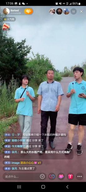活动全程采用抖音直播,对外推介产品和宣传产地价值,侃侃而谈中,直播接近尾声,两位专家对实践团的到来与所做的一切表示由衷的感谢,也表示希望在后续能继续合作,双方以彼之长,补己之短,以期共赢。实践团成员表示,今天的活动收获颇丰,不仅感受到了乡村魅力,也在和专家的交谈中深切感受到了粮食的来之不易,农耕是生活的根,也是田间文化的底蕴,我们青年大学生应该懂得感恩,并传承农耕文化,为乡村振兴赋能。