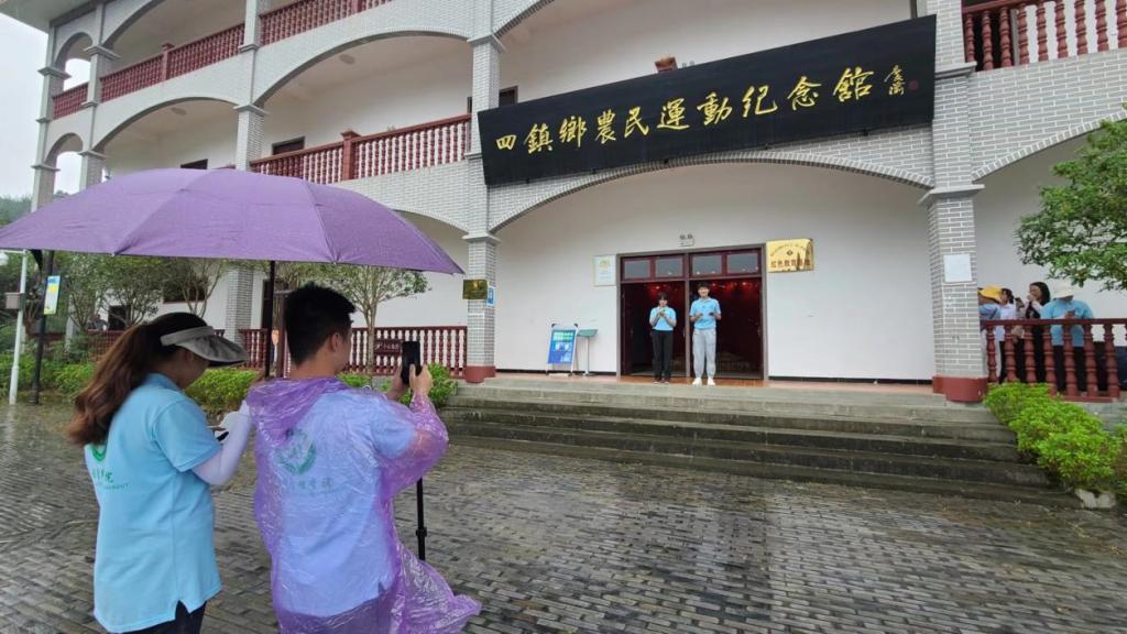 首先来到的是四镇乡农民运动纪念馆。随着主播问题的深入,第一位讲解员陈王双女士介绍到:四镇乡农民运动纪念馆位于涪陵区大顺镇大顺村,占地面积452㎡,建筑面积1227㎡,以大革命时期和土地革命时期四镇乡农民历史为陈列主要内容。向前简要追溯到辛亥革命时期,向后延伸到抗日战争、解放战争和解放初期的征粮剿匪时期。主要分为前言、四镇乡农民运动、四镇乡农民主要历史人物、四镇乡后续的革命斗争四个单元展出。