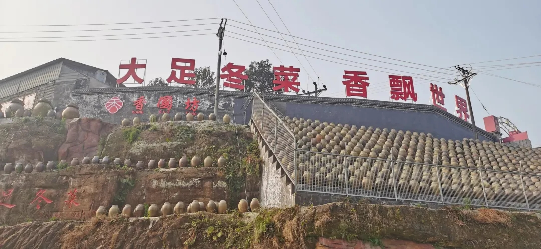 大足冬菜,既是烹制川菜的重要辅料,也是重要的调味品,被列为“中国传统名腌菜之一”,距今已有800多年的历史。2009年,大足冬菜制作技艺被列入重庆市第二批非物质文化遗产名录。在工作人员的讲述下,我们了解了大足冬菜从种植到成品的过程。每颗冬菜“白露播种”,“立春收获”。而后需要经过“晾晒、洗净、加盐、揉搓、封坛、储存”六道工序,而且封坛以后的储存必须置于露天,经受至少一千多个日夜的风吹日晒、霜打雪冻才能开坛食用。正所谓,“不知严冬酷寒,哪知春日可亲”。