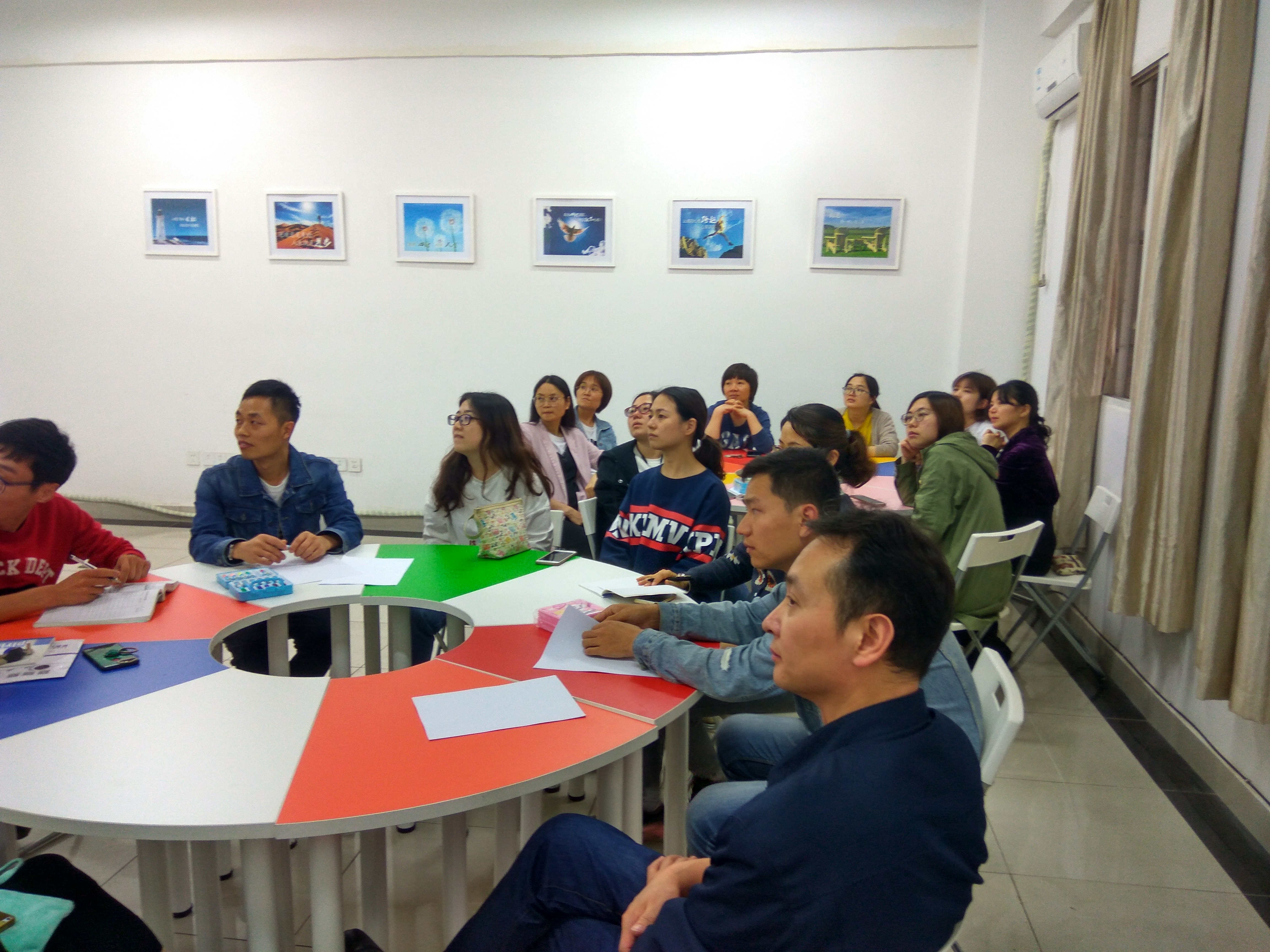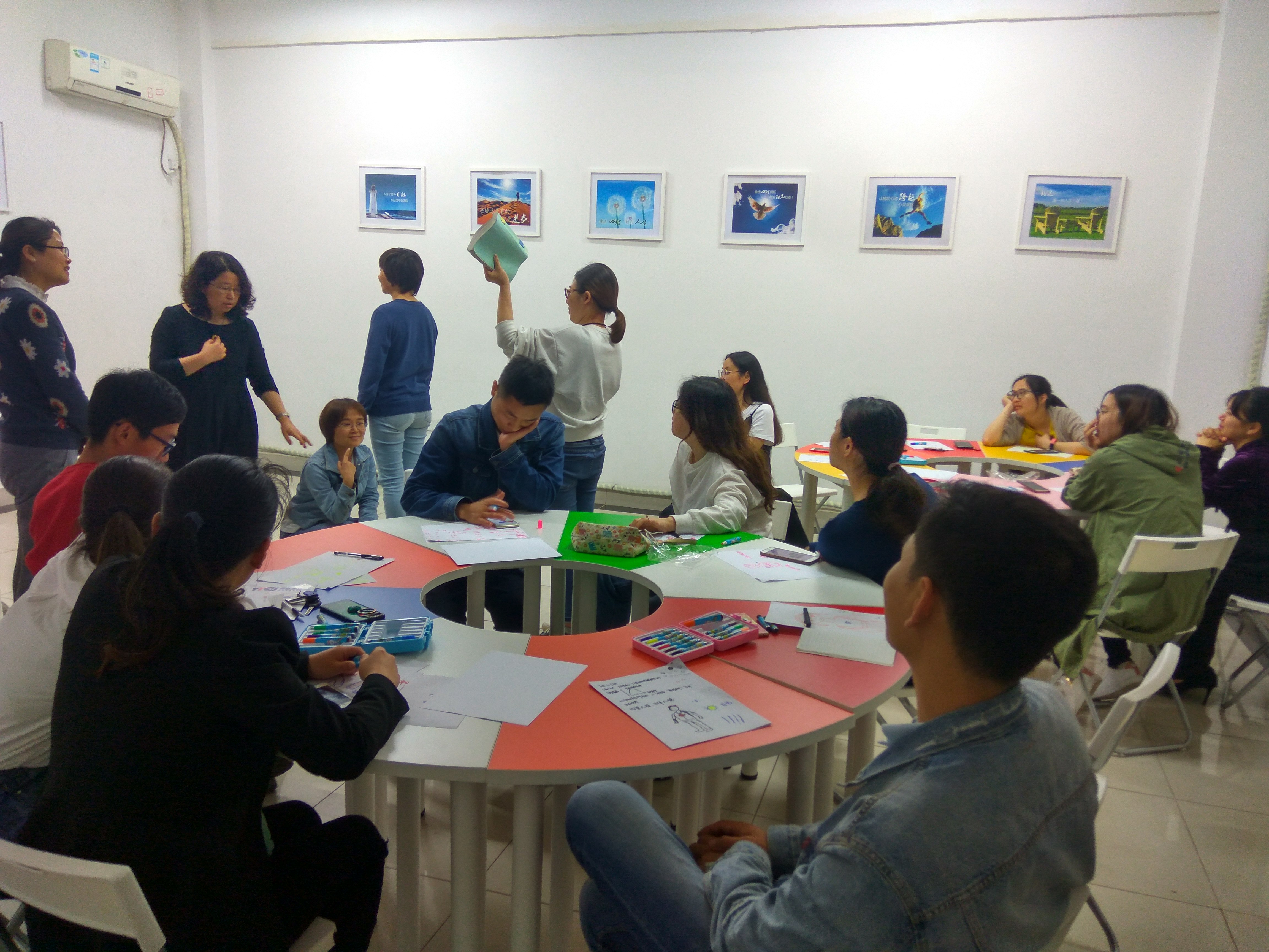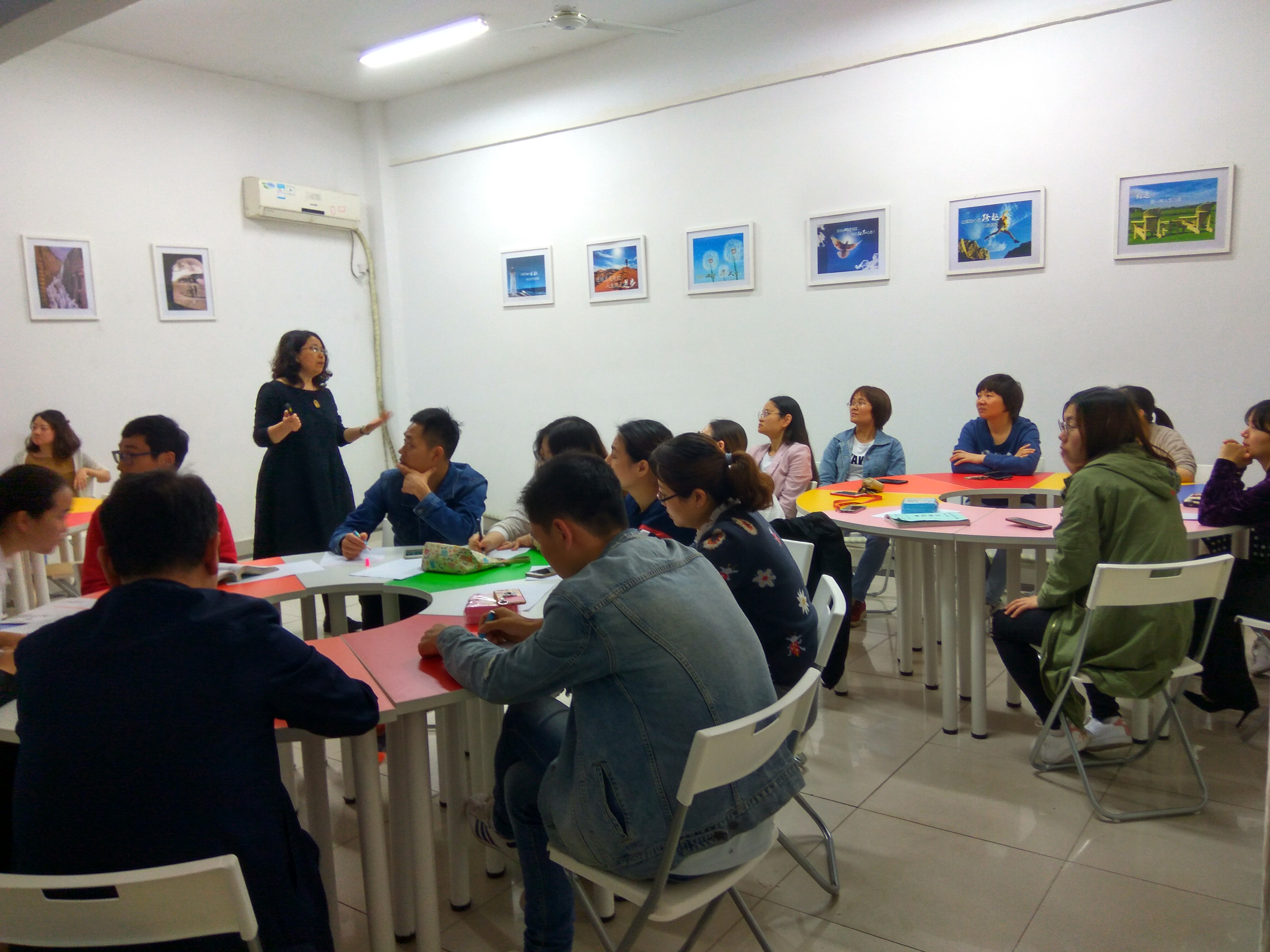 叶教授首先通过冥想放松,让大家觉察自己感受到的压力以及压力对自己目前生活造成的影响。紧接着,她向大家详细讲解了压力的相关理论,从心流体验到80/20定律,娓娓道来,再通过“100万分配”活动环节,带领大家向内看,做积极的人生探索。随后,叶教授再一次引导大家进行了情绪冥想,通过系列问题逐一与自己的内心核对,找出近期困扰自己的情绪,完成情绪绘图,并在小组内分享讨论。最后,叶教授以现场雕塑的形式分别对三位老师进行了案例操作,将情绪与身体对应起来,一一解读这些情绪并提供合理调适的方法。