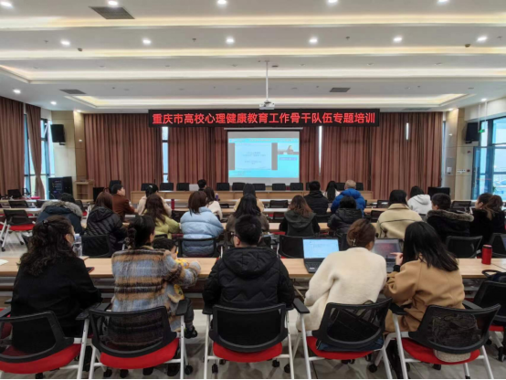 新学期伊始,根据市教委工作要求,2月24日-25日koko体育组织全体专兼职心理健康教育教师、辅导员和班主任等参加了以“新时代高校心理育人创新与实践”为主题的培训。本次培训由市教委主办、重庆师范大学承办,采取现场培训和网络直播两种形式。其中,koko体育心理健康教育工作骨干教师1名参加现场培训,其余50余名专兼职心理健康教育教师、辅导员和班主任在学生活动中心学术报告厅集中参加线上直播学习。