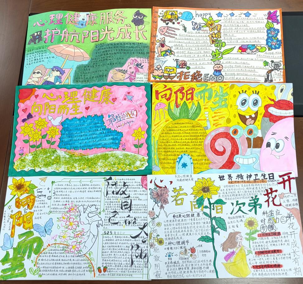 手抄报创作活动则聚焦“知识普及、情绪管理、心态培育、资源宣传”四大方向,鼓励师生结合理解与感悟进行艺术表达。各班积极动员、教师现场指导,参与者通过图文结合、色彩搭配等创意方式,将抽象心理概念转化为可视化作品,进一步深化对心理健康内涵的认知。