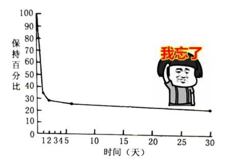 学习中的遗忘是有规律的。遗忘在个体学习之后立即就开始了,其速度具有先快后慢的特点。在我们学习完某段材料后的1天时间里,我们就会忘记超过一半的内容。随着时间间隔的延长,遗忘的速度降低,但如果学习后一直不及时复习巩固,我们会忘掉大部分的学习内容。