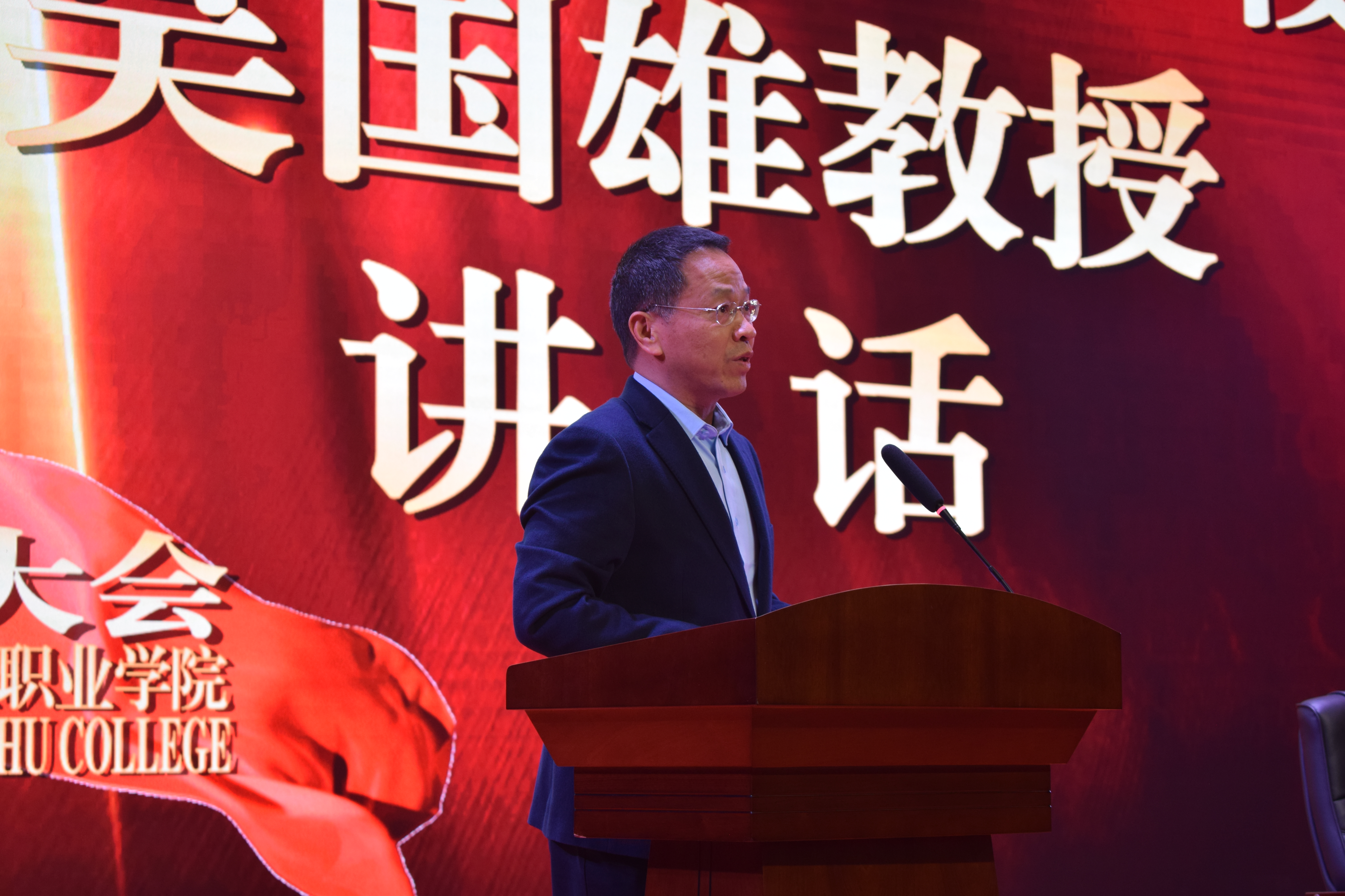 最后,校长吴国雄向所有受到表彰的先进集体和先进个人表示热烈祝贺,并提出三点殷切希望:一是要坚定理想信念,积极投身新时代中国特色社会主义伟大事业,在实现中国梦的生动实践中放飞青春梦想;二是要加强道德修养,努力成为社会主义核心价值体系的践行者。三是要练就服务本领,自觉锤炼意志,努力增长才干,积极投身实践,真正成为现代建设所需要的高素质人才。