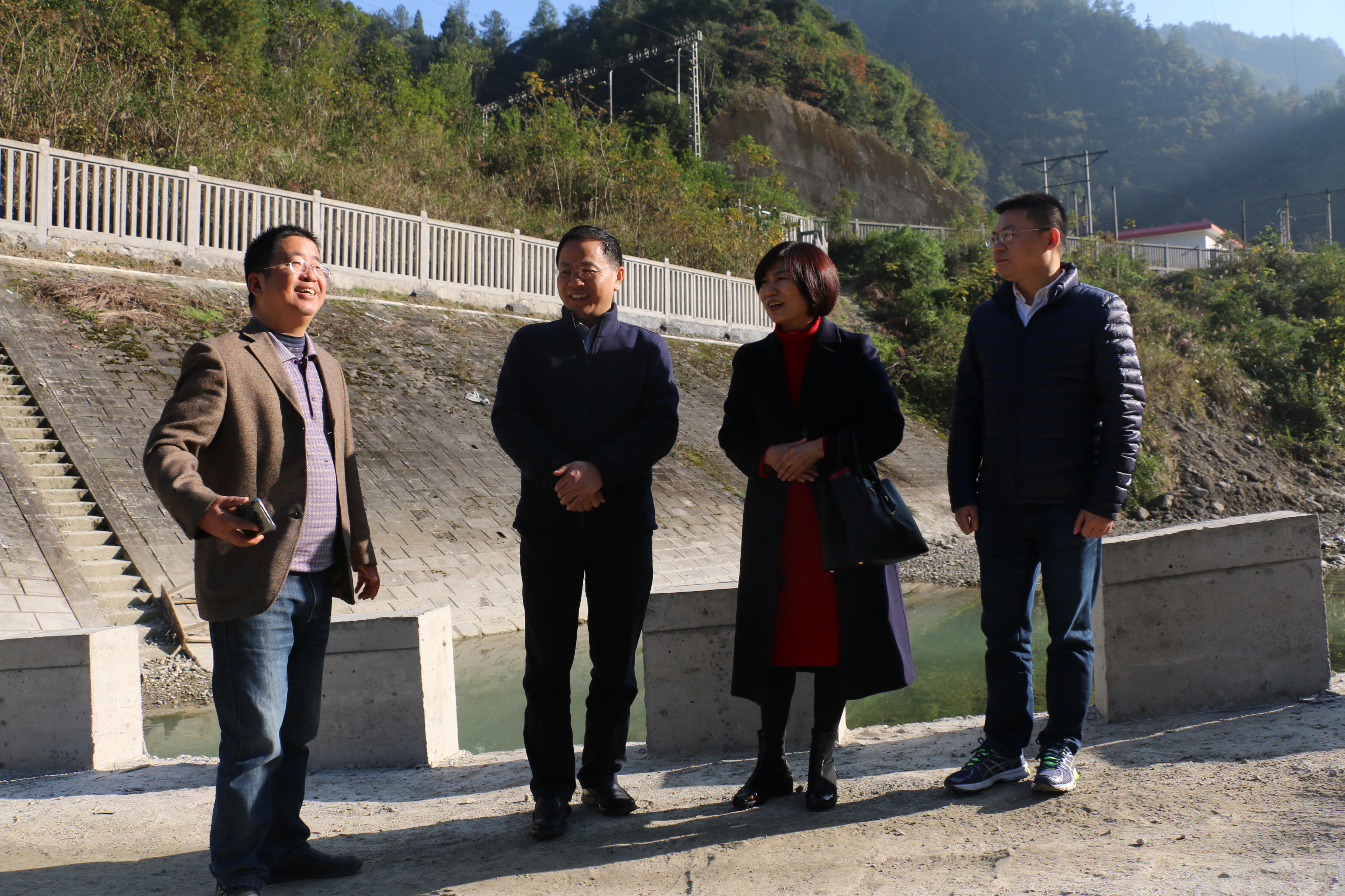 慰问小组察看koko体育扶贫项目桃坪村半河沟滚水坝工程