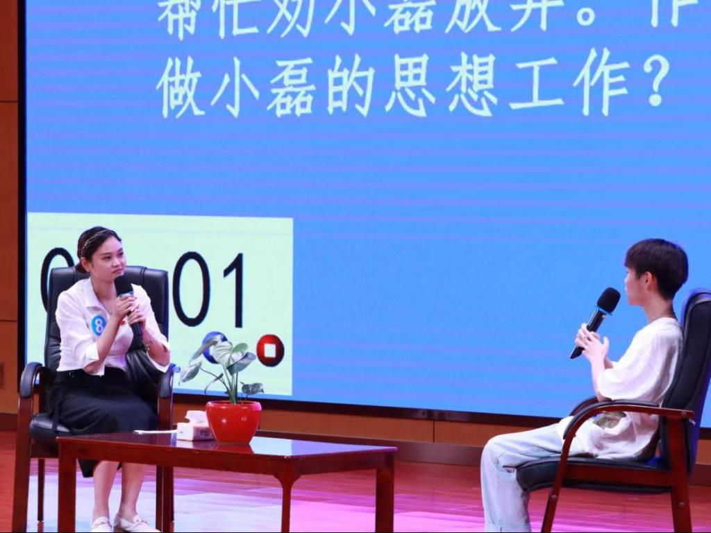 本次大赛由三部分组成,分别是基础知识测试、案例研讨、谈心谈话。基础知识测试环节已于5月10日完成,该环节的前8名选手进入今天的现场决赛环节。