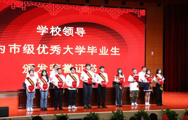 典礼在庄严的国歌声中拉开帷幕。学校团学干部为毕业生们带来了情景朗诵《青春起航》,祝福师兄师姐们毕业快乐、前程似锦。副校长刘幼昕教授宣读了市级优秀大学毕业生名单、校级优秀大学毕业生名单,与会校领导为获奖学生颁奖,并为校友联络员颁发荣誉证书和聘书。