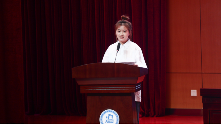 随后,建设管理学院社区服务与管理专业何嫒妮同学作为新生代表发言。她表示,大学是人生新的起点,在这里要拔亮理想之灯,点燃目标之火;要学会自强自立,坚持团结友爱;要传承红色基因,争做时代新人。