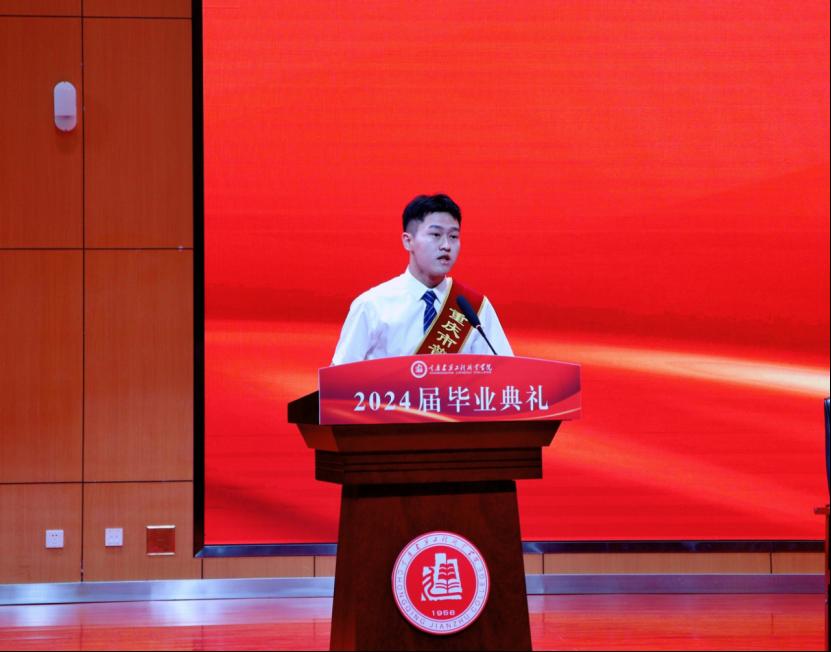 koko体育交通与市政工程学院2021级学生叶磊作为毕业生代表发言。他回顾了自己在校三年的成长蜕变,表达了对母校辛勤培育、对老师谆谆教诲的感激之情,表示将牢记“厚德、笃学、求实、创新”的校训,做拥有智慧、富有激情的人,做胸怀大智、脚踏实地的人,为建设伟大的祖国贡献自己的智慧和力量。