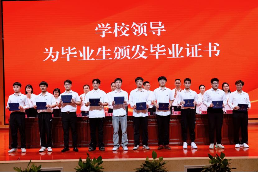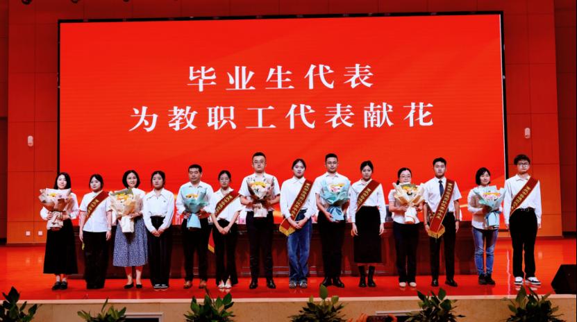 随后,全体参会毕业生进行了庄严的“步入社会与廉同行”宣誓仪式。毕业生代表为教师代表献上鲜花,感谢老师们的辛勤付出与温情陪伴。与会领导为毕业生代表颁发了毕业证书。
