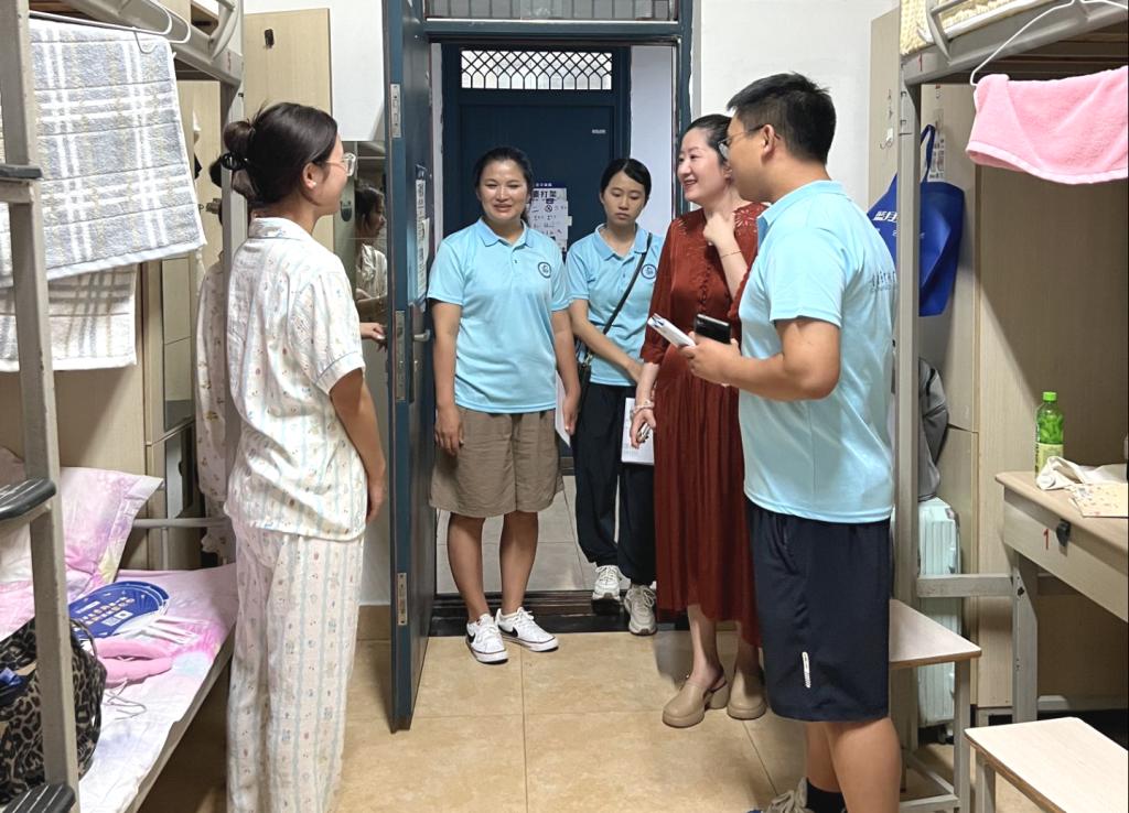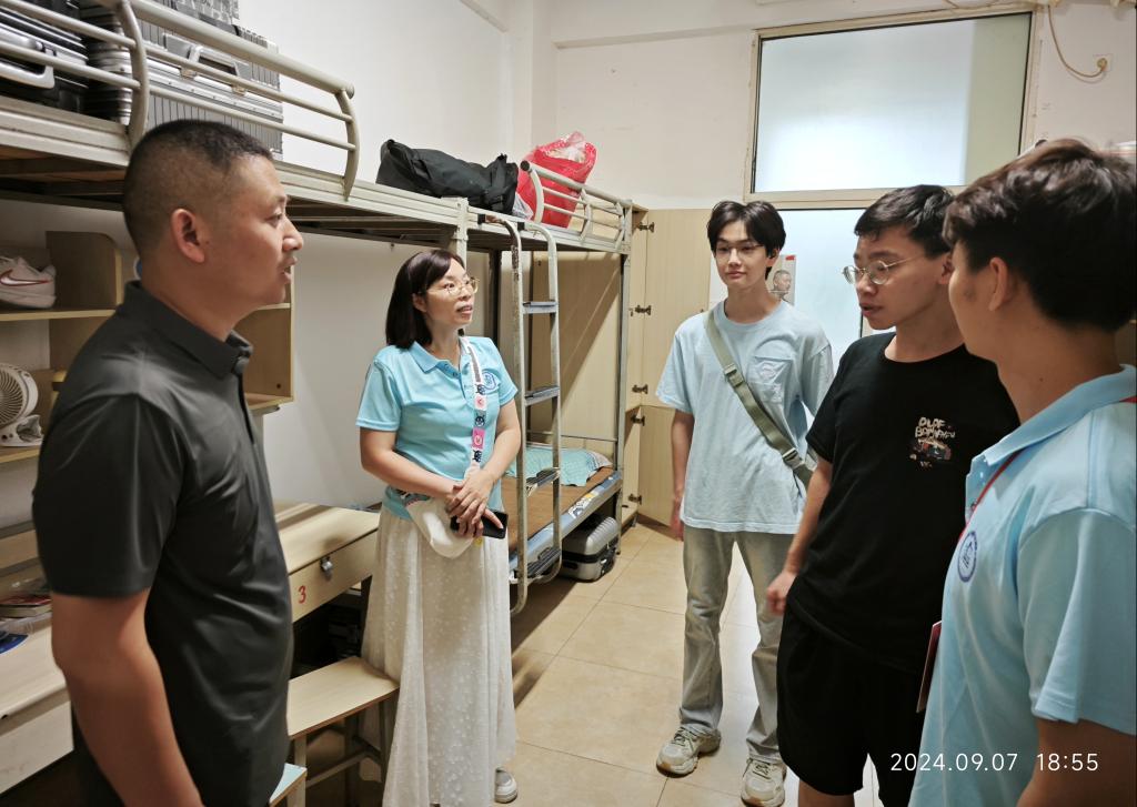 9月8日下午,校党委副书记郭光亮带领党委学生工作部、各二级学院党总支书记(副书记)前往教学楼、“一站式”学生社区看望慰问2024级新同学。