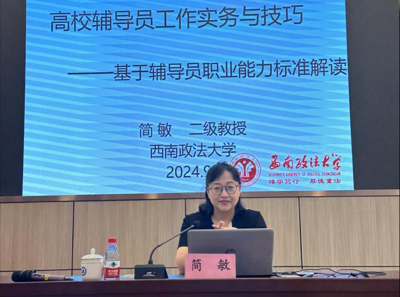 上午的培训,首先由重庆邮电大学党委学工部副部长常硕作题为《浅谈新时代高校辅导员职业发展的认知与实践》的专题讲座。常硕从如何理解辅导员专业化职业化发展为切入点,讲述了辅导员实现工作与研究二元统一的三大优势,分享了打造有特色的辅导员工作品牌和开展有意义的辅导员研究工作的职业发展路径。接着,由享誉全国最美高校辅导员的西南政法大学一线专职辅导员简敏作题为《高校辅导员工作实务与技巧》的专题讲座。简敏教授提出辅导员应准确定位自身角色,坚定职业信念,增强职业认同感、荣誉感,勇担时代重任,同时对标辅导员职业技能标准,注重自身专业素质和业务能力的提升,在工作中将情、理、法灵活融合,用爱的教育鼓励学生、成就学生、成就自己。