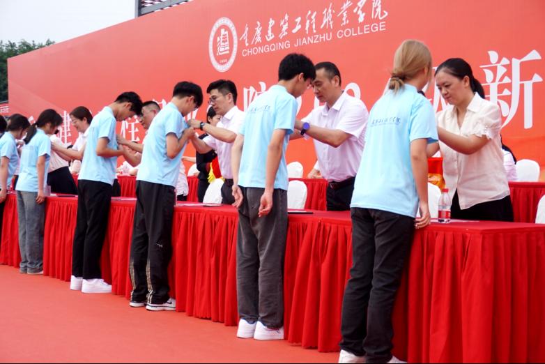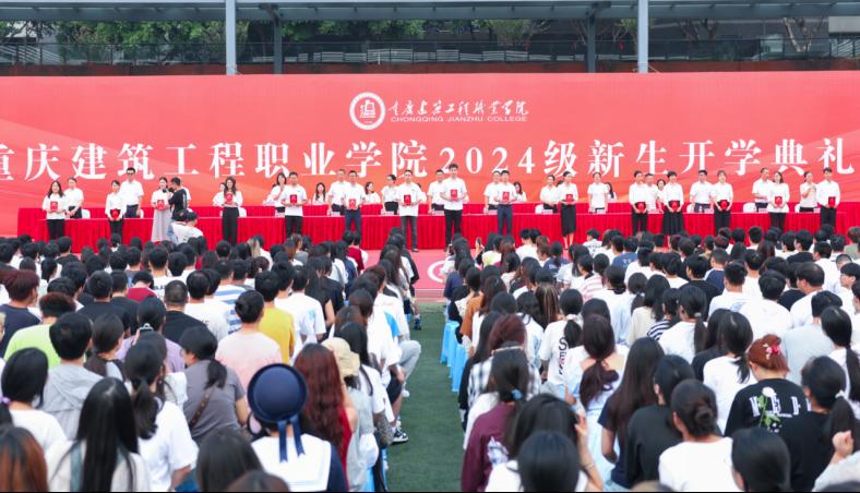 学校领导为2024级新生代表佩戴校徽。在校徽戴至胸前的那一刻,4890名同学正式成为了建工学子,将承载建工人“尚德尚能、善建善成”的使命与荣光。