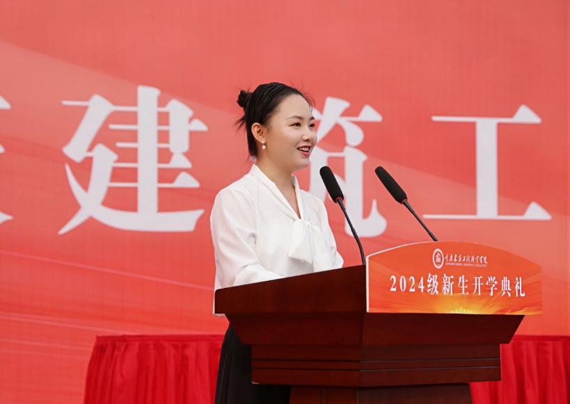 智能建造学院邓莉老师作为辅导员代表发言,鼓励同学们点亮自己心中的那盏萤火,砥砺前行,在奋斗中见众生、见天地、见自己,成为最好的自己。
