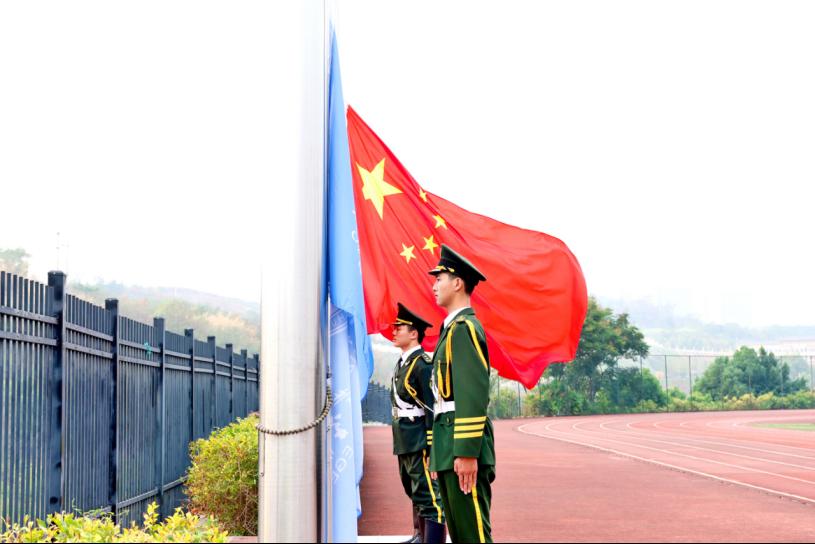 在庄严的国歌声中,五星红旗冉冉升起,全体师生肃然而立,开学典礼正式拉开帷幕。