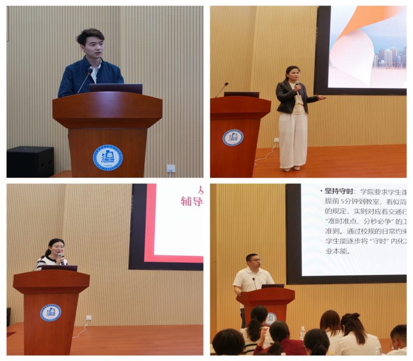 活动中,7位辅导员多维度解析校规校纪的思政价值:智能建造学院曾垂华以真实案例呈现制度育人实效;数字设计学院钟婷婷探索规则教育与美育融合路径;智能制造学院李丹凤提出“从规训到共情”的育人转向;财经商贸学院姚雨阐释了“刚柔并济”的管理艺术;人工智能、交通运输、城市治理学院辅导员分别从情感联结、价值引领、思想浸润等角度分享实践经验。